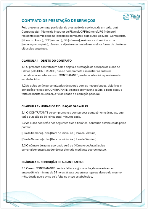 Contrato de Exclusividade de Prestação de Serviços de Pilates