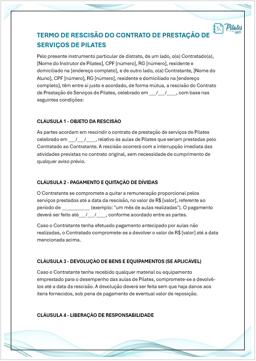 Termo de Rescisão do Contrato de Prestação de Serviços de Pilates